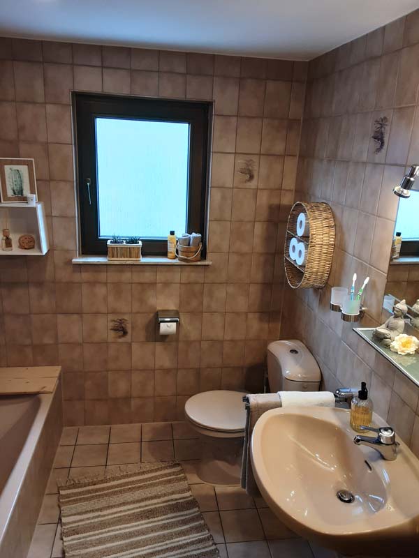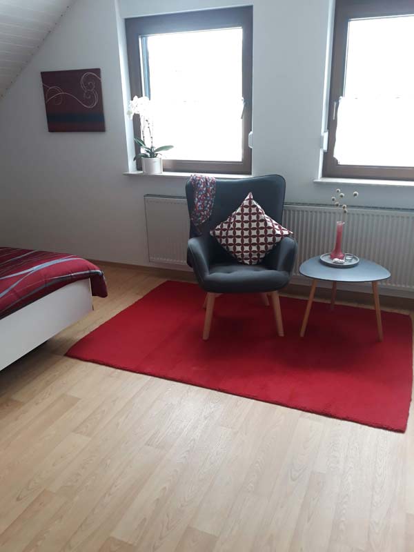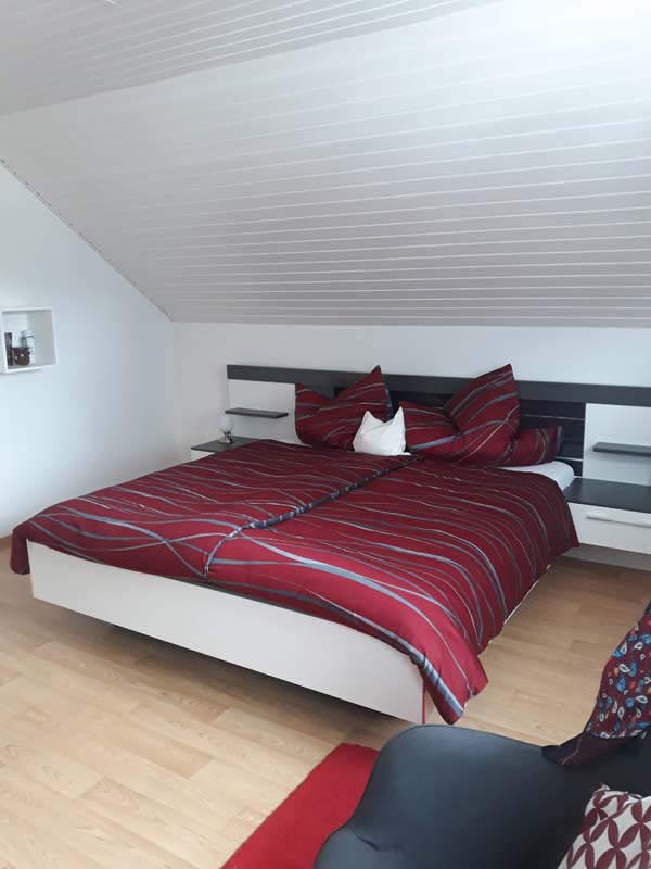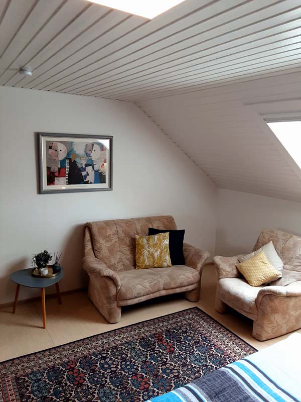 Die 2021 neu erstellte große Ferienwohnung im Obergeschoss, auf einer ganzen Etage, liegt in ruhiger und sonniger Ortsrandlage.